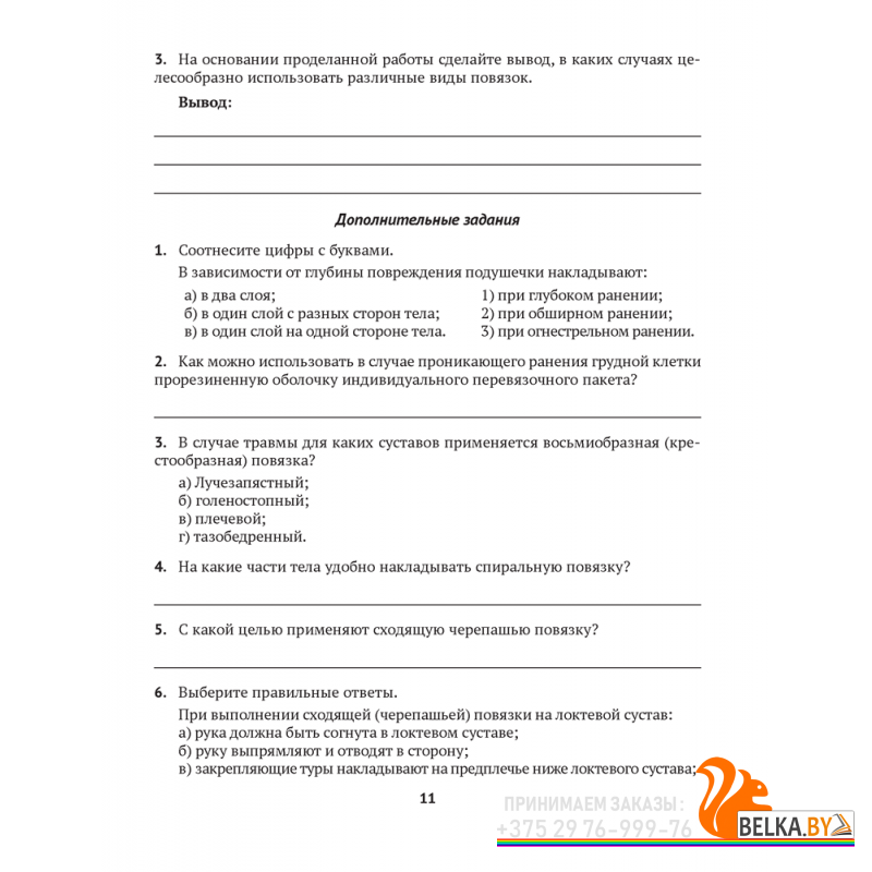 Материалы издания соответствуют программе и учебному пособию «Медицинская подготовка». В тетради приведены инструкции по выполнению практических работ, дополнительные задания, а также задания для медицинской практики. Издание включает обязательные для изучения материалы, которых нет в учебном пособии. Использование тетради позволит учащимся систематизировать знания по медицинской подготовке, которые пригодятся в повседневной жизни.Адресуется учащимся 10 класса учреждений общего среднего образования.