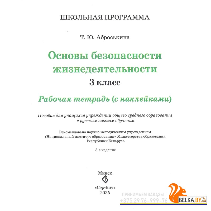 Основы безопасности жизнедеятельности 3 класс, 3 класс, обж 3 класс, Сэр-Вит, Сэр-Вит, 2025, 9789855979952, 978-985-597-995-2, 9789855977453, 978-985-597-745-3, 9789855975947, 978-985-597-594-7, 9789855974568, 978-985-597-456-8, Аброськина Основы безопасности жизнедеятельности 3 класс Рабочая тетрадь с наклейками, обж, с наклейками, 2022, Т. Ю. Аброськина, обж 3 класс Рабочая тетрадь, с наклейками, Рабочая тетрадь