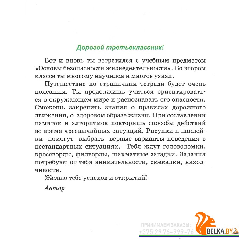 Рабочая тетрадь соответствует требованиям учебной программы по предмету «Основы безопасности жизнедеятельности», утверждённой Министерством образования Республики Беларусь в 2020 г.