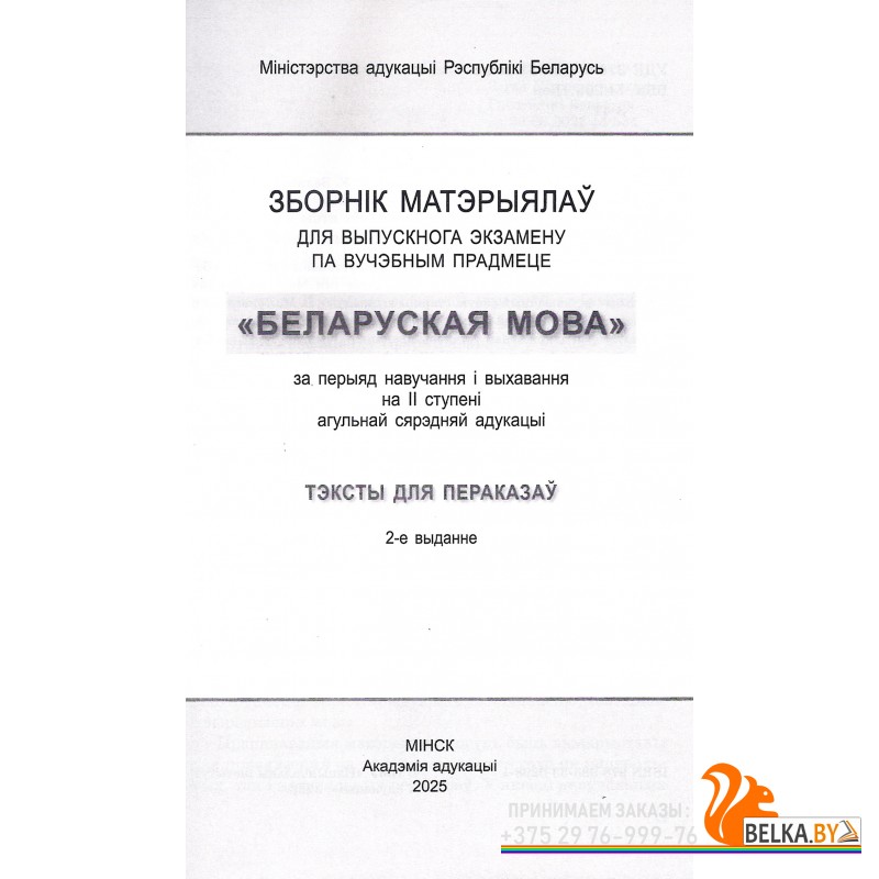 Беларуская мова 9 клас, 9 класс, Беларуская мова, СэрВит, Сэр-Вит, Академия образования, 2025, 9789853302981, 978-985-33-0298-1, 9789855978122, 978-985-597-812-2, 978-985-597-812-2, сборник материалов по белорусскому языку, изложения по белорусскому языку, изложения 9 класс, сборник материалов па беларускай сове для 9 класса, изложения для 9 класса, сборник по белорусскому языку для 9 класса, Зборнік матэрыялаў для выпускнога экзамену па вучэбным прадмеце Беларуская мова за перыяд навучання і выхавання на ІІ ступені агульнай сярэдняй адукацыі Тэксты для пераказаў, Зборнiк матэрыялау для выпускнога экзамену па вучэбным прадмеце Беларуская мова за перыяд навучання i выхавання на ii ступенi агульнай сярэдняй адукацыi. Тэксты для пераказау, Зборник матэрыялаў для выпускнога экзамену па вучэбным прадмеце Беларуская мова за перыяд навучання и выхавання на 2 ступени агульнай сярэдняй адукацыи Тэксты для пераказау, 9 класс, белорусский язык, экзамены 9 класс, 2022, 2023, сборник материалов, изложения, сборник изложений 9 класс, сборник изложений по белорусскому языку 9 класс, сбоник изложений
